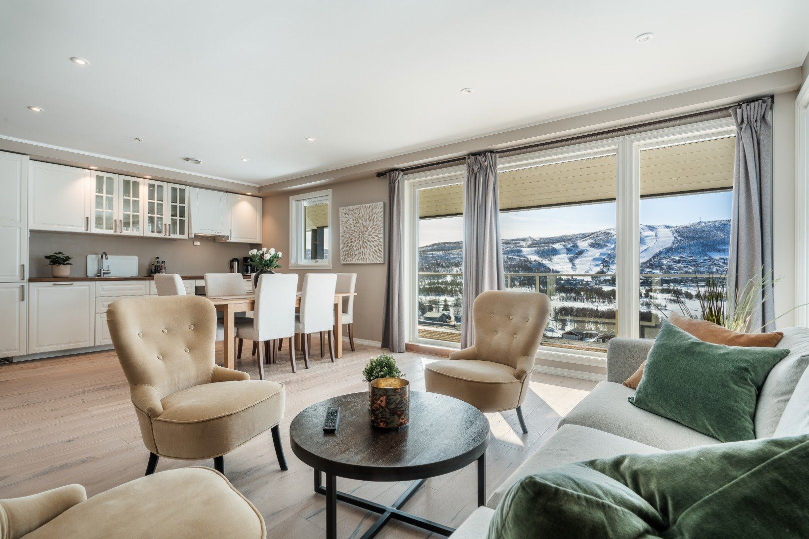 Lejlighederne er beliggende 500 meter fra skicenteret med flot udsigt ud over Ustedalen og skiområdet Vestlia. Skibussen holder lige uden for resortet og kører dagligt t/r på faste tidspunkter. Resortet består af en hotel- og en lejlighedsdel.