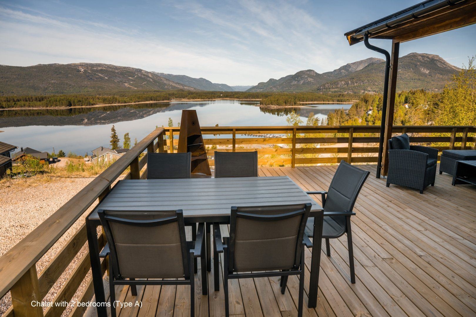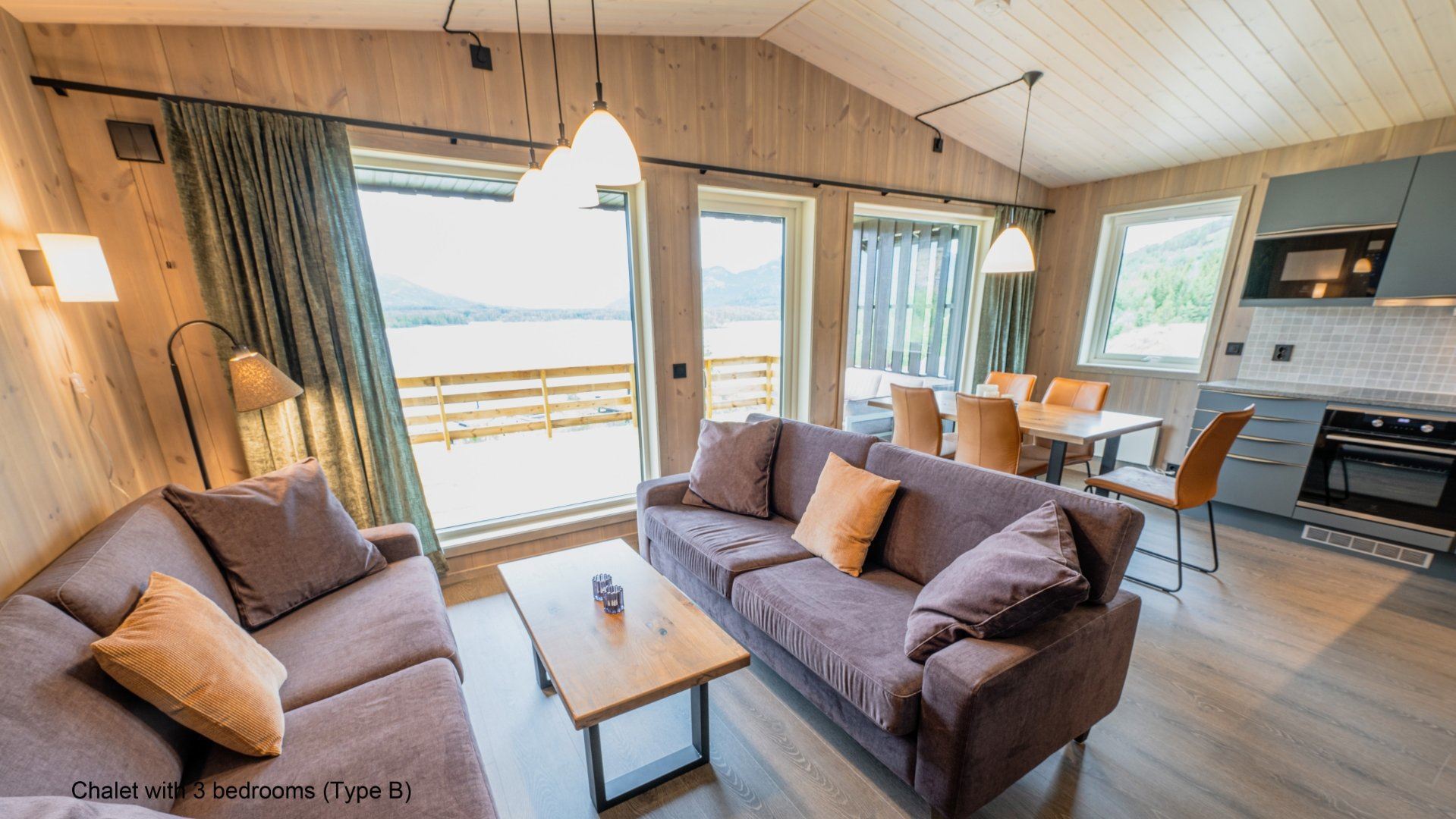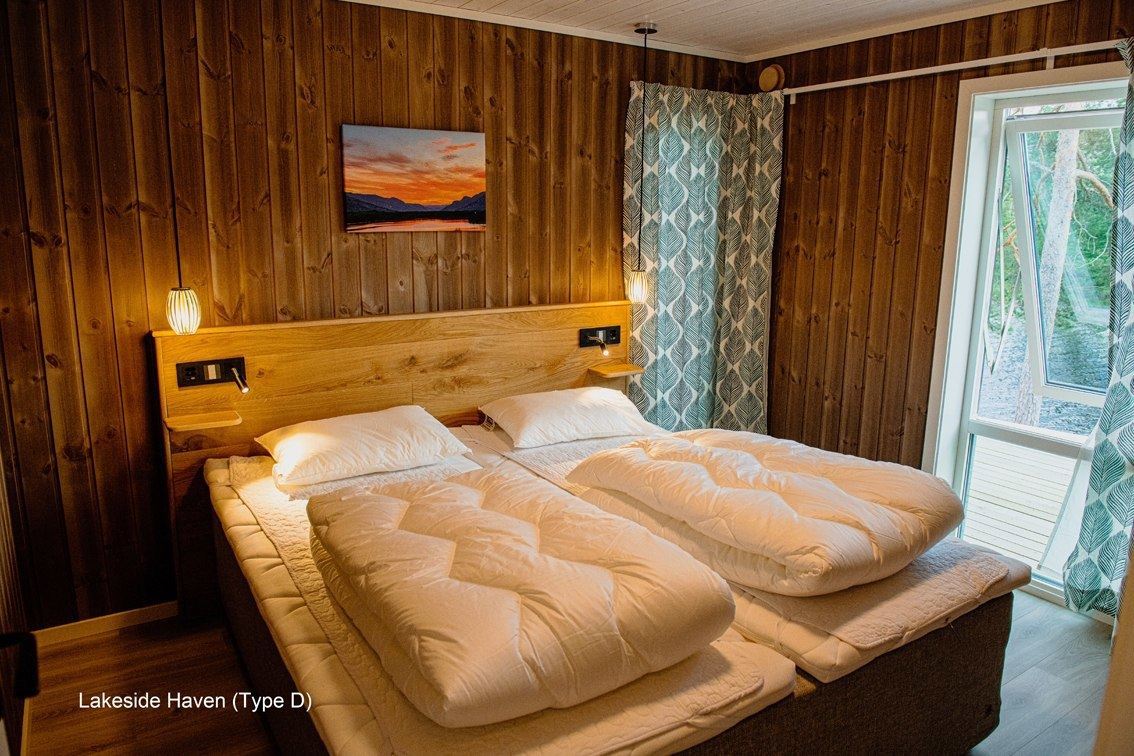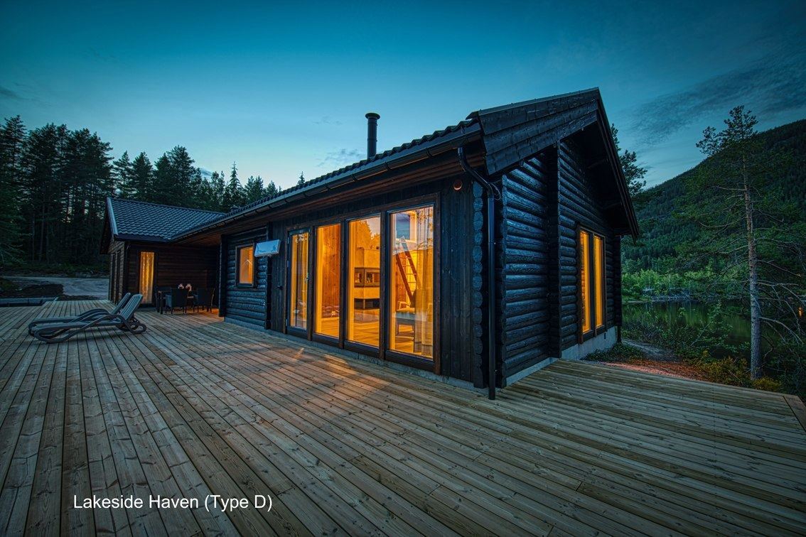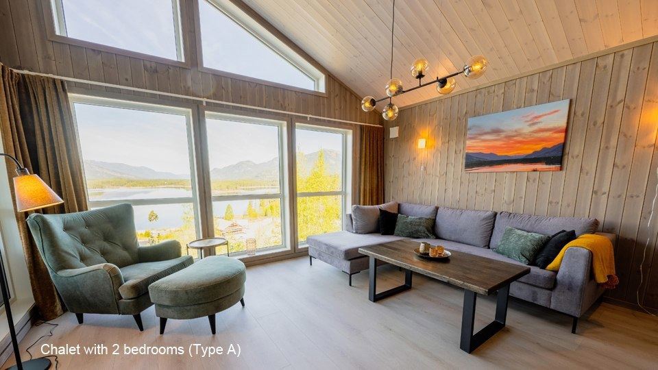 Flotte hytter med alle bekvemmeligheder og en perfekt udsigt over sø og fjeld.