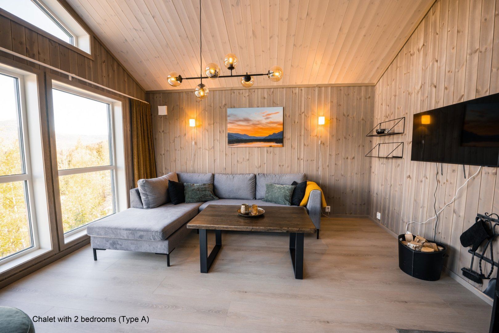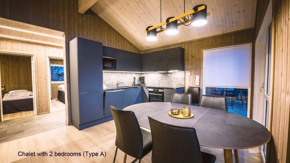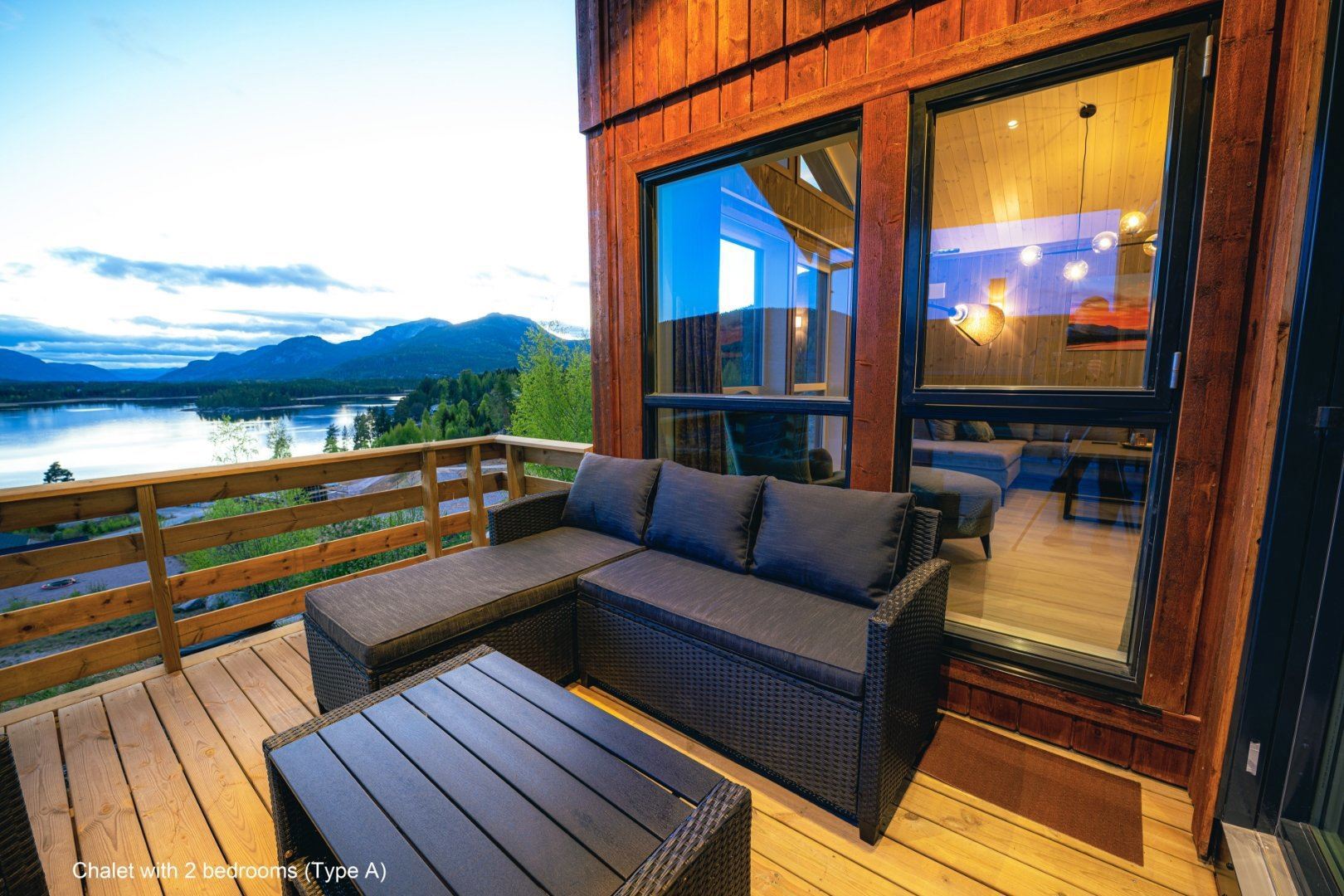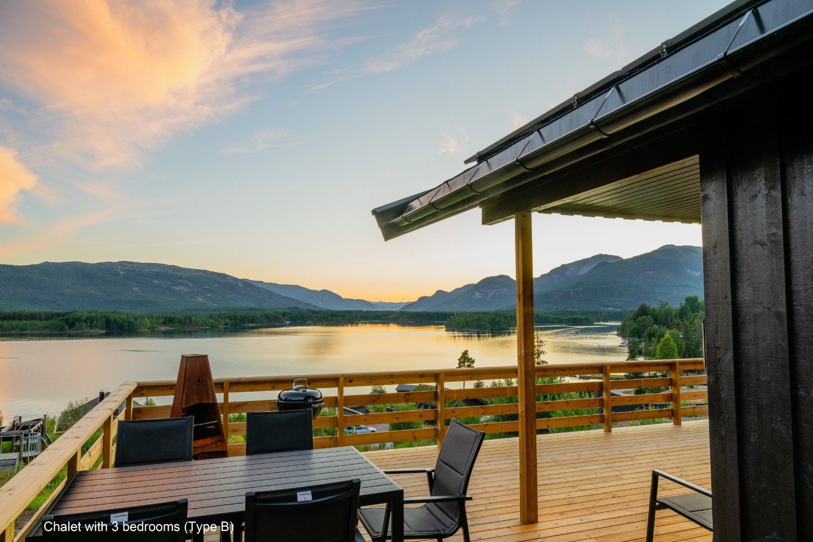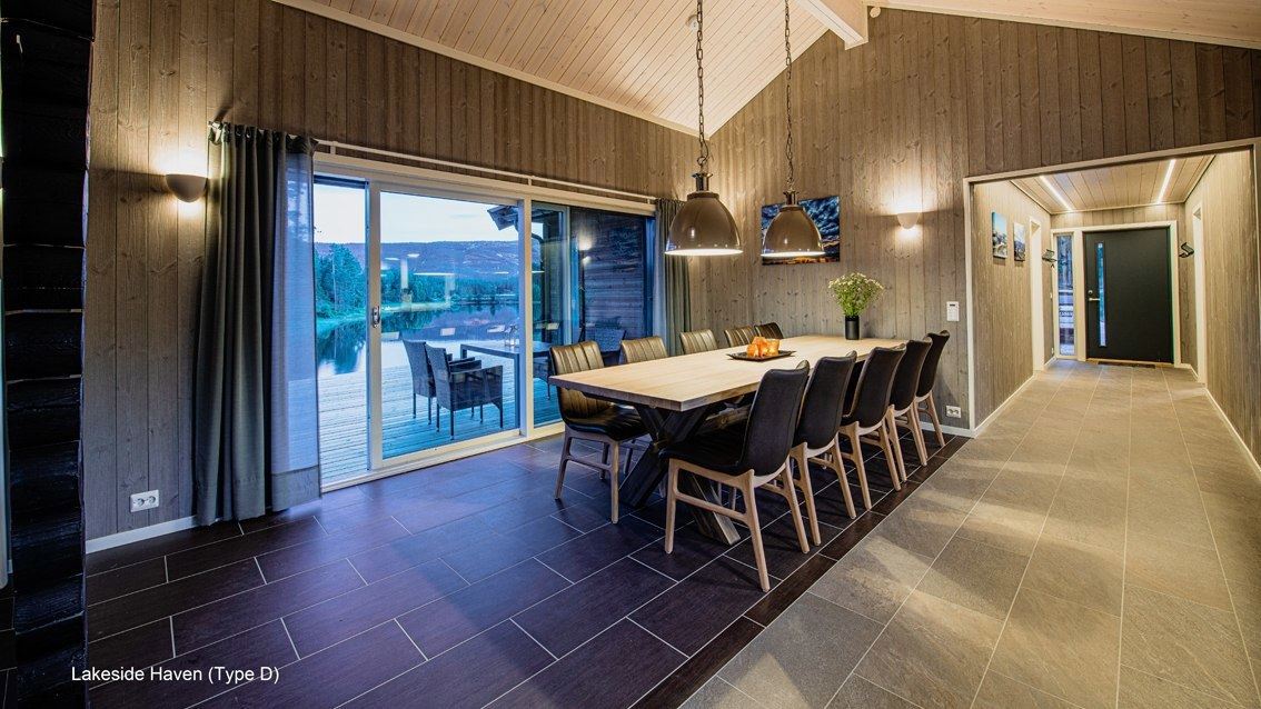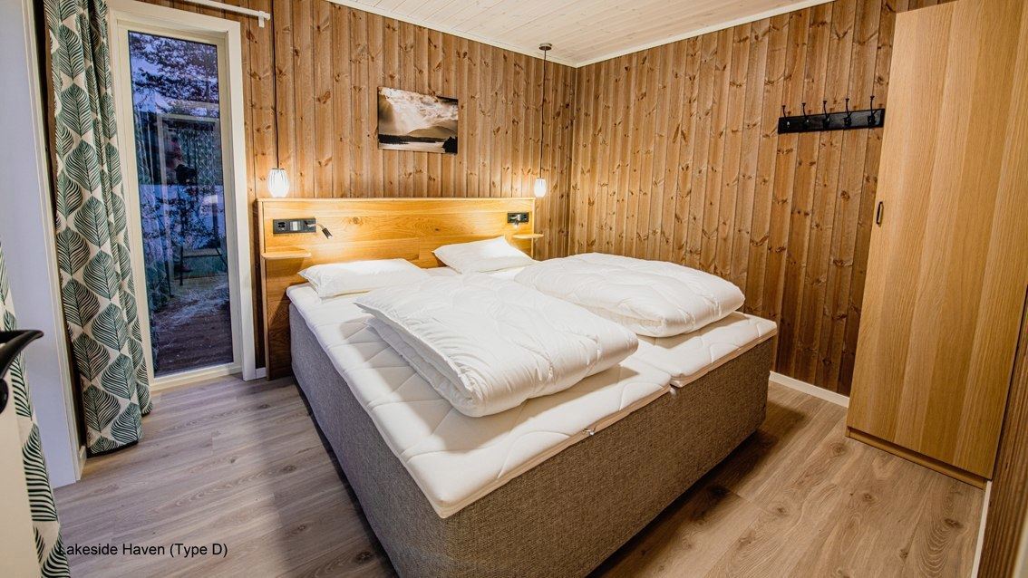 Flotte hytter med alle bekvemmeligheder og en perfekt udsigt over sø og fjeld.