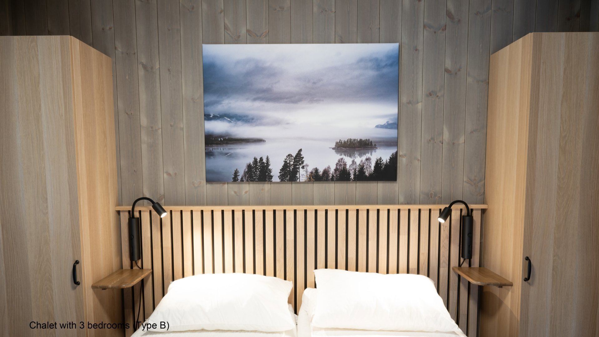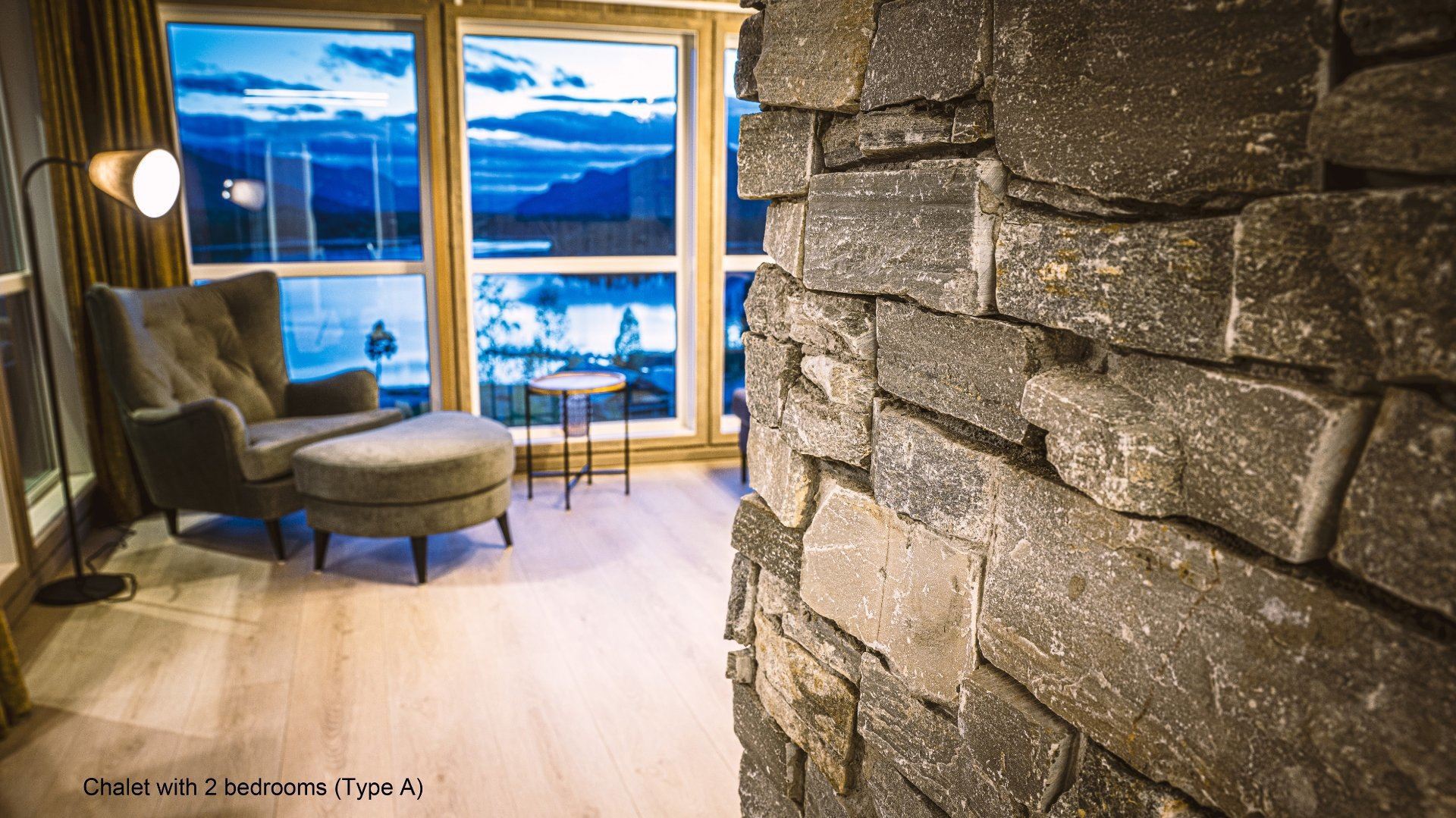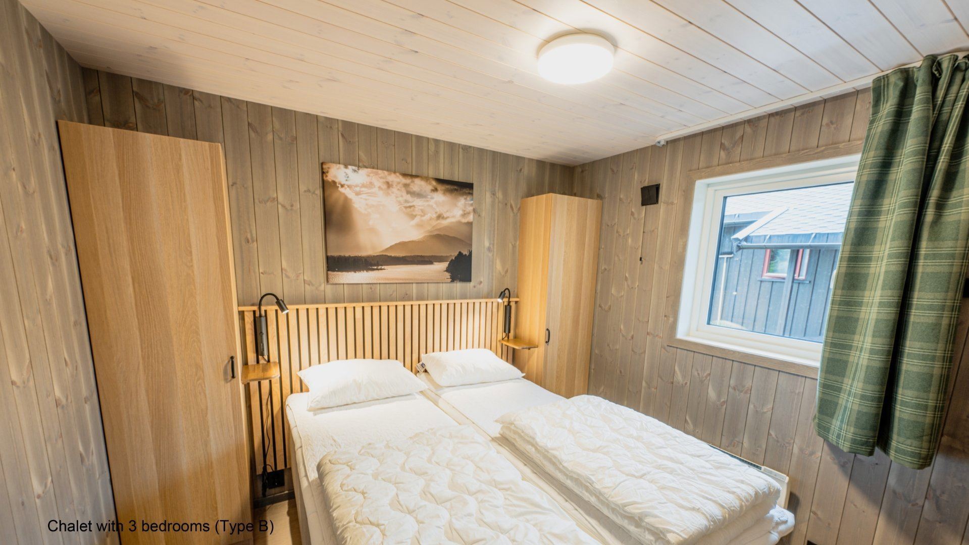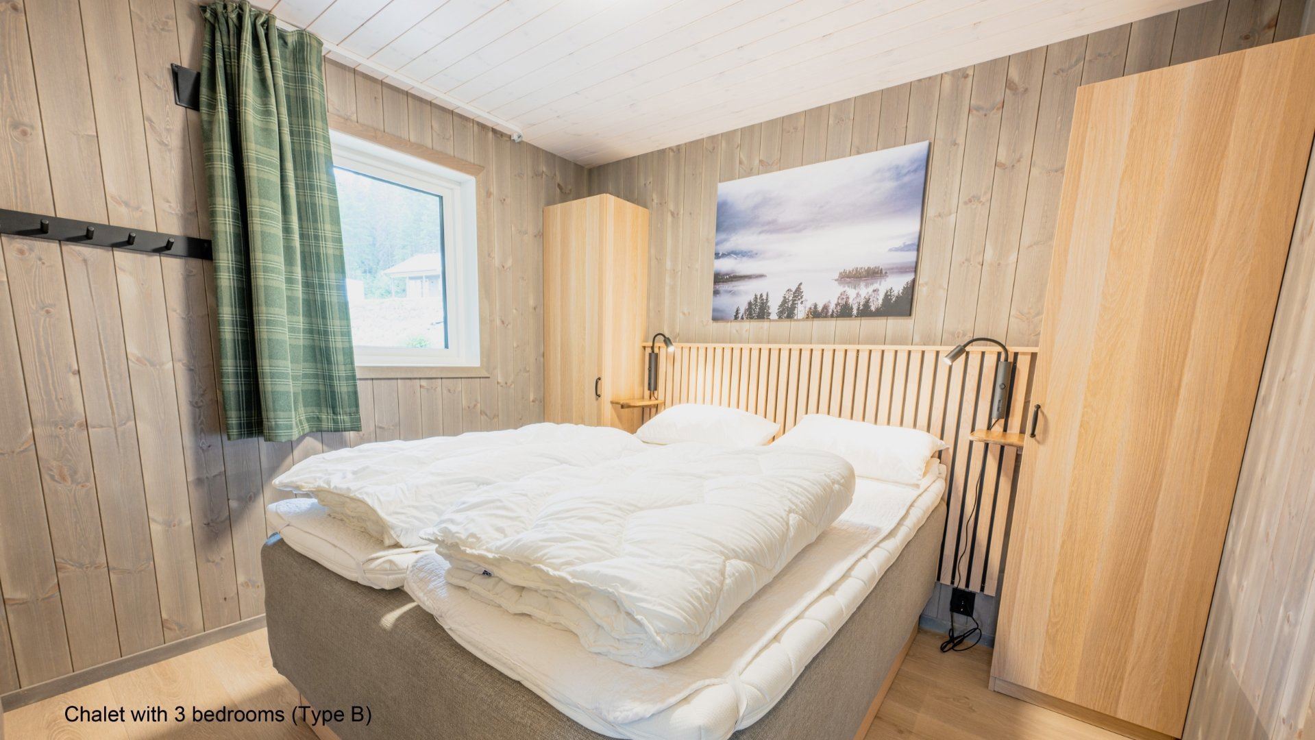 Flotte hytter med alle bekvemmeligheder og en perfekt udsigt over sø og fjeld.