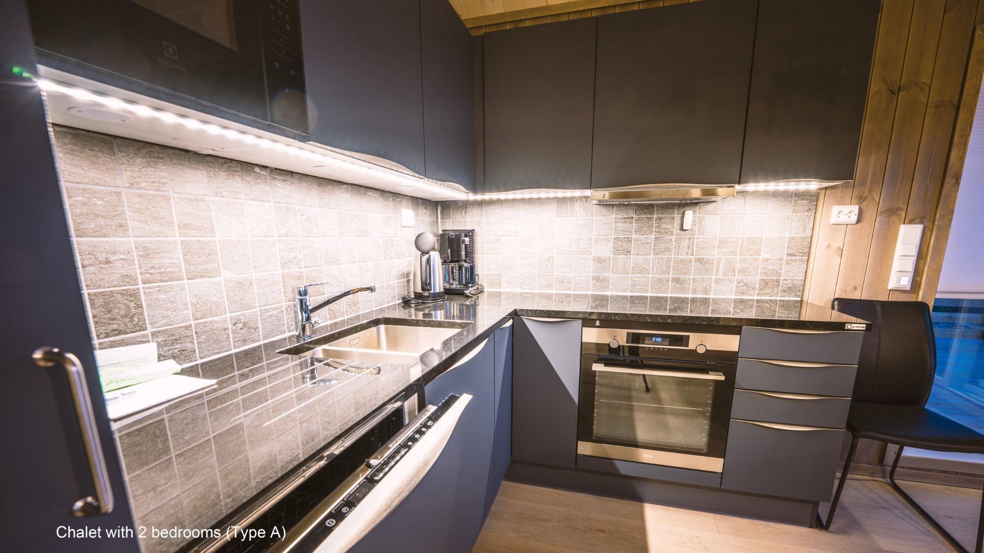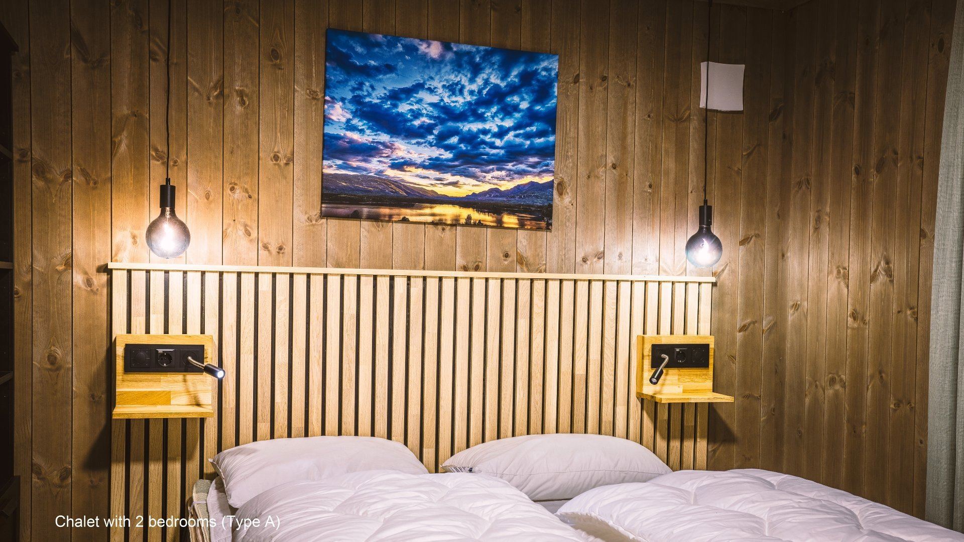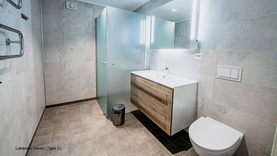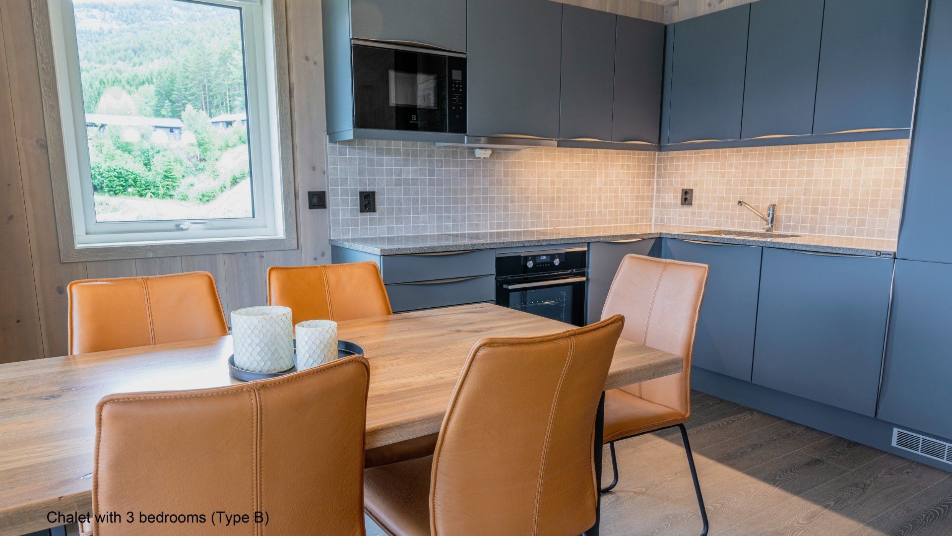 Flotte hytter med alle bekvemmeligheder og en perfekt udsigt over sø og fjeld.