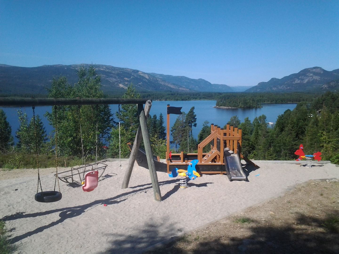 Der er bygget 3 mindre legepladser med sandkasser, gynger og rutsjebaner. Disse er spredt rundt i området, så børnene kan lege i nærheden af hytten. Ved søen Nisser er der en sandstrand og en vandtrampolin.